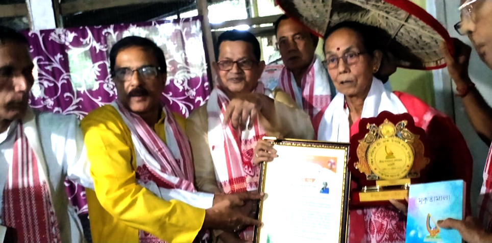 বোকাখাত (Bokakhat)ৰ বিশিষ্ট লেখিকা, কবি, অৱসৰপ্ৰাপ্ত শিক্ষয়িত্ৰী, পুৱতি সাহিত্য সভাৰ প্ৰাক্তন সভাপতি কল্পনা চেতিয়াক সাংস্কৃতিক মহাসভা, অসমৰ তৰফৰ পৰা আজি নিজ গৃহত সম্বৰ্ধনা প্ৰদান (Kalpana Chetia felicited by Cultural Mahasabha, Assam) কৰে৷ অলপতে গুৱাহাটীৰ বিশেষ অনুষ্ঠানত অসমৰ ৰাজ্যপালে সম্বৰ্ধনা জনোৱা অনুষ্ঠানত শাৰীৰিক অসুস্থতাৰ বাবে তেখেত যাব পৰা নাছিল।