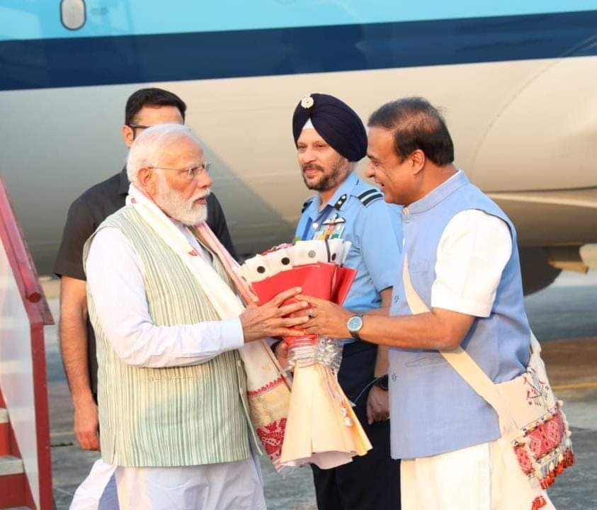 ১৮ হাজাৰ কোটিতকৈও অধিক প্ৰকল্পৰ উদ্বোধন তথা আধাৰশিলা স্থাপনৰ বাবে শুকুৰবাৰে অসমত উপস্থিত হয় প্ৰধানমন্ত্ৰী নৰেন্দ্ৰ মোদী (Narendra Modi)। তেজপুৰ বায়ুসেনাৰ বিমানঘাটিত আজি বিয়লি উপস্থিত হোৱাৰ লগে লগে মোদীক উষ্ম আদৰণি জনায় মুখ্যমন্ত্ৰী হিমন্ত বিশ্ব শৰ্মাই।