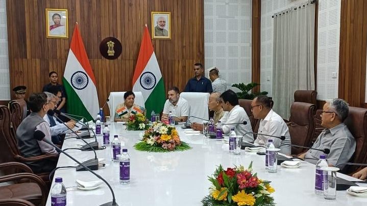 On July 8, Leader of the Opposition in the Lok Sabha, Rahul Gandhi, made his third trip to Manipur, meeting with the state’s Governor alongside Chief Secretary Vineet Joshi and Security Adviser Kuldeip Singh. The session also included prominent Congress leaders from Manipur, such as Okram Ibobi Singh, Keisham Meghachandra, and Gaikhangam.