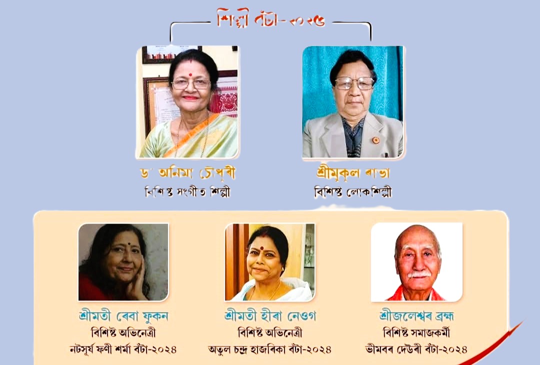 অহা ১৭ জানুৱাৰীত গোলাঘাটত আয়োজিত কেন্দ্রীয় শিল্পী দিৱসৰ অনুষ্ঠানত তেওঁলোকক এই বঁটাৰে সন্মানিত কৰা হ’ব।ইয়াৰ উপৰি অসমৰ কলা-সংস্কৃতি, সমাজ আৰু সাহিত্য জগতলৈ অমূল্য অৱদান যোগোৱা তিনিগৰাকী ব্যক্তিক ৰাজ্যিক পৰ্যায়ৰ বঁটাৰে সন্মানিত কৰা হ’ব।